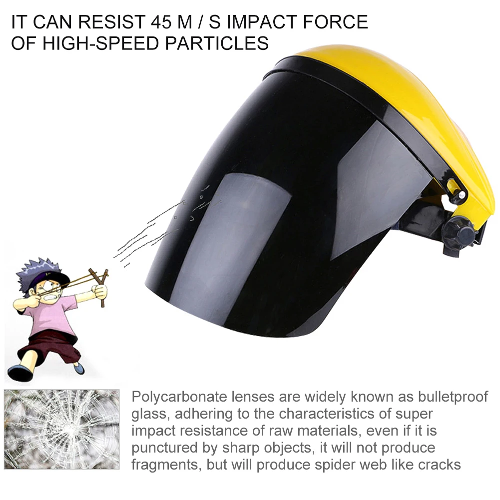 Feature: 1. Suitable for laboratory chemical liquid splash, soot splash, metal splash, impact-resistant physical splash. 2. High temperature resistance, can withstand 130 Alta high temperature, used for high temperature splashing and heat radiation welding. 3. Spraying can easily damage the skin of the face. The surface of the screen can effectively block the splash of welding slag. It does not touch the welding slag and is easy to clean. 4. Impact resistance, high-speed particle resistance, 45m/s impact resistance, polycarbonate lenses, super impact resistance, even if punctured sharp objects will not produce debris, only cracks. 5. Good surface display, anti-ultraviolet, hands-free, wide field of view, 8-level shadow. Specification: Note: