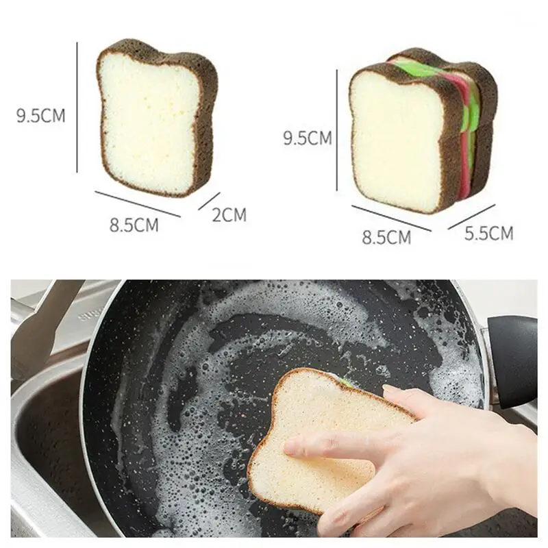 Creative Washing Dishes Sponge Washable Scrubber Tools Household Cleaning Gadget Sponges Toast Sandwich Shape Cute Remove Stains