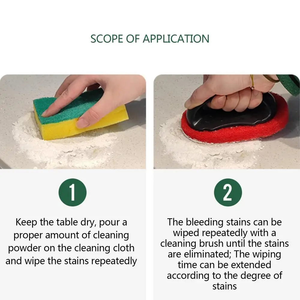 1. Keep the countertop dry, pour an appropriate amount of cleaning powder on the scouring pad, and wipe the stain repeatedly
