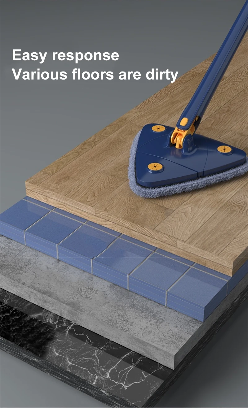 【Space-saving design】Cleaning Mop can be stored in a vertical corner, occupying less space, also for quick dry. Works with: Stone, Tiles, Laminate, Hard Wood, Vinyl, Bamboo, Cement, Baseboards, and Drywall.